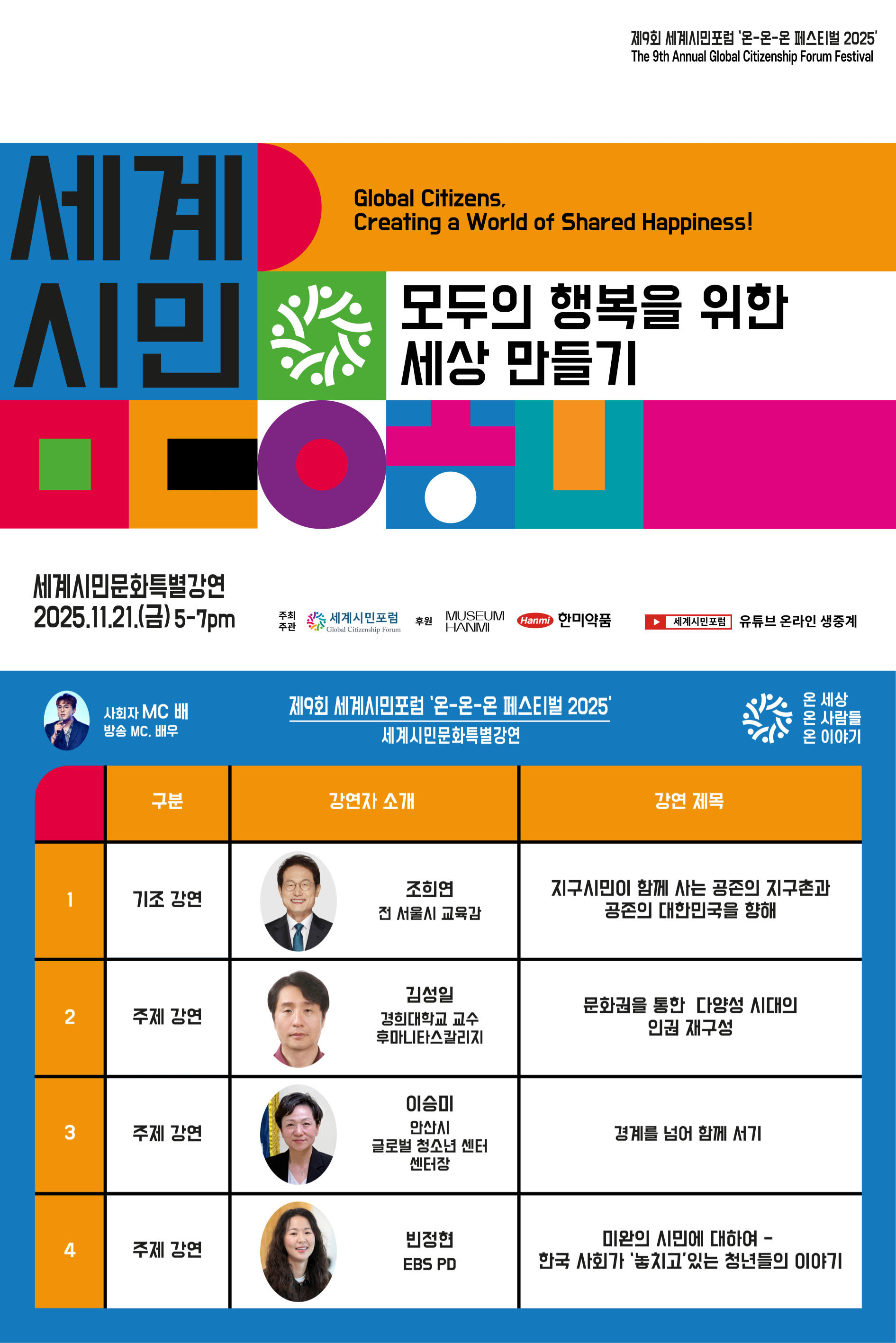 〈세계시민문화특별강연 2025〉 Youtube Live 바로가기